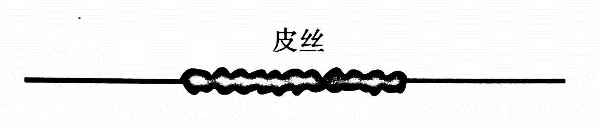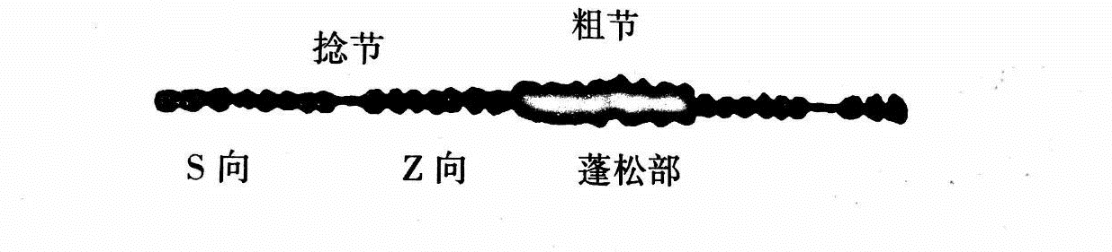 (5)混捻假捻絲絲條加工中在加捻區和解捻區形成了有正、反兩種捻度,所以從總體上講,正、反捻度抵消而“無捻”,而在絲條的局部卻有正、反的捻度,從而形成混捻假捻變形絲(圖10),它有單股型及混纖型兩種。